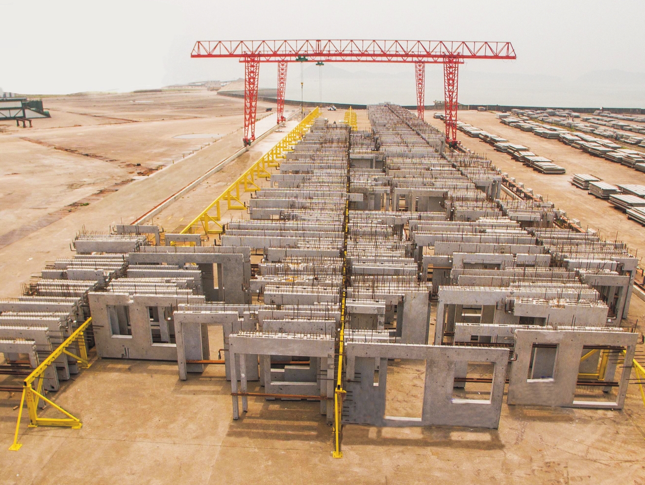 公司位于溫嶺東海之濱,松門鎮(zhèn)龍擔嶼裝配式建筑工業(yè)化科技產(chǎn)業(yè)園區(qū)內(nèi)。園區(qū)總占地面積700余畝,其中裝配式PC構(gòu)件生產(chǎn)占地200余畝,擁有30000㎡工業(yè)廠房和150畝構(gòu)件堆場,以及25000㎡的辦公、住宿、食堂、娛樂場所,投入國內(nèi)先進的自動化環(huán)形流水生產(chǎn)線1條,固定模臺生產(chǎn)線4條,規(guī)劃年產(chǎn)預制構(gòu)件約10萬立方砼,可生產(chǎn)疊合樓板、樓梯、內(nèi)外墻板、梁柱、陽臺、空調(diào)板等不同類型的構(gòu)件。